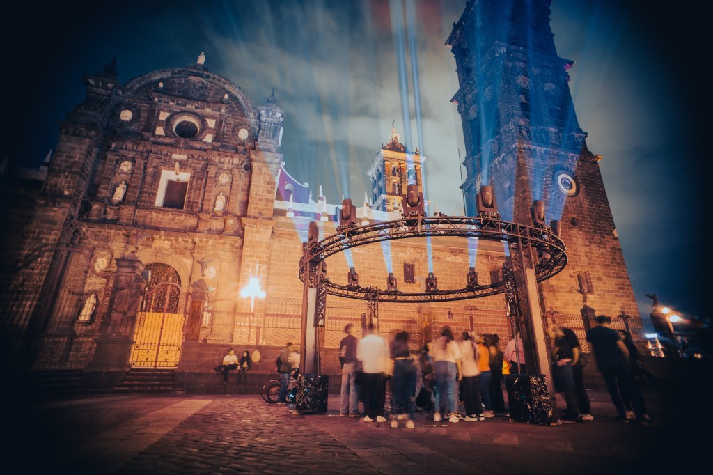 Ahí reside el artificio: observamos las instalaciones a través de la pantalla de la cámara incluso cuando tenemos la fuente frente a nosotros. Aunque la latencia y el modo automático perviertan la figura, la selfie está lista para confirmar en redes que estuvimos ahí. Nuestro papel es apreciar una máscara de luces que, lejos de iluminar la historia, la oculta bajo los píxeles. La estética global de la luz borra las imperfecciones patrimoniales; dejamos de estar en Puebla para estar dentro de una obra de consumo masivo.